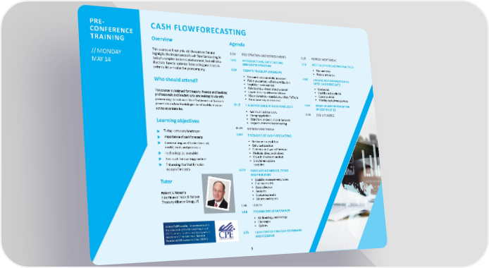PRE- CASH FLOWFORECASTING CONFERENCE Overview Agenda TRAINING This course will not only set the context for and 8:30 REGISTRATION ANDREFRESHMENTS 3:15 REFRESHMENTBREAK // MONDAY highlight the importance of cash flow forecasting in 9:00 INTRODUCTIONS,EXPECTATIONS 3:30 BESTCASHFORECASTINGPRACTICES today’scomplexbusiness environment, butwill also ANDADMINISTRATION MAY14 illustrate how to optimize forecasting processes in • Tips andtricks order to deliver value for yourcompany. 9:30 TODAY’S TREASURYLANDSCAPE • Processattributes • Treasurer’s accountability incontext 4:00 ENHANCING CORPORATEVALUE Who shouldattend? • Risk management –effective mitigation WITH CASHFORECASTS • Liquidity –cashanddebt • Marketrisk • Relationships –internal and external • Liquidity and creditrisk Thiscourse is designed for treasury, finance and banking • Capabilities –to deliver excellence • Operationalrisk professionals and leaders who are seeking to identify • Major disruptors –regulations, cyber, FinTechs • Working capitalmanagement proven ways to enhance the effectiveness of forecast • Know your corporatecontext processes and methodologies used to deliver value 10:15 THEIMPORTANCEOFCASHFORECASTS 5:00 WRAP-UP ANDPRESENTATION across anenterprise. OFCERTIFICATES • Axioms of cashforecasts 5:30 END OFCOURSE • Changingpriorities Learningobjectives • Objectives andusesofcashforecasts • Impacts of limited/noforecasting 10:45 REFRESHMENTBREAK Today’s treasury landscape 11:00 THEBASICSOFCASHFORECASTING Importance of cashforecasts Constructing an effective forecast • Net income vs cashflow model, tools andprocesses • Daily cashposition • Elements and typesof forecasts Technology as anenabler • Methods: direct andindirect Best cash forecastingpractices • Keyroleofvarianceanalysis • Enrichmentoptions Enhancing shareholdervalue overtime via cashforecasts 12:00 FORECASTINGMODELS,TOOLS ANDPROCESSES Tutor • Liquidity managementprocess • Forecastmodels • Datacollection Robert J. Novaria • Analytics EuroFinance Tutor &Partner • Evaluatingresults Treasury Alliance Group,US • Metrics andreports 1:00 LUNCH 2:00 TECHNOLOGYASANENABLER • Methodology andstrategy Collect7 CPEcredits– inaccordance with • Challenges the standards of the National Registry of • Options CPE Sponsors. Credits have been granted 2:45 CASHFORECASTINGQUESTIONNAIRE based on a 50-minute hour. National ANDFEEDBACK RegistryofCPESponsorsIDNo.105441 5