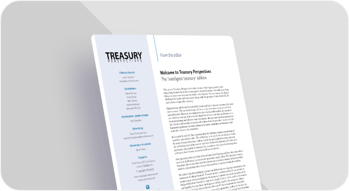 From the editor Editorial director Welcome to Treasury Perspectives Leslie Holstrom editor@eurofinance.com The ‘intelligent treasury’ edition Contributors Mariel Barclay This year’s Treasury Perspectives looks at some of the bigger global trends Simon Brady impacting business from the re-emergence of globalisation to the shift away from China to lower cost locations in which to do business. We also look at the digital Mark Parsley challenge for banks and corporates along with the promise of what FinTech, AI Katrina Rollinson and robotics might offer treasury. Jonathan Williams Digitalisation will be the focus both for banks and their corporate customers for some Art direction + graphic design time to come. The speed of change will be at a pace that most treasurers will find uncomfortable. However, it is imperative that you keep informed as new products Nick Chapman are rolled out and you don’t miss the digitalisation boat and what could turn out to be an interesting and effective suite of solutions. Because increased automation via Advertising AI, robotics and machine learning will without doubt impact the treasury and the Susan Christopherson functions it performs. In some instances, for some companies, automation could make the treasury role redundant. susanchristopherson@eurofinance.com It’s a catch 22, isn’t it? The corporate drive for efficiency requires automation of Marketing + circulation repetitive operational tasks. The technology to do that is fast becoming available Jane Pinfield for many treasury functions. Add in a bit of AI and machine learning and soon the technology may make smarter and better-informed judgement calls that were previously only possible by humans. So, to embrace that type of technology may Enquiries well mean that treasury automates itself out of existence. EuroFinance, 20 Cabot Square, Our journalists this year look at the advances in technology and how those may offer a London, E14 4QW, UK new level of efficiency in cross border payments, supply chain, FX and other treasury T: +44 (0)20 7576 8555 functions. But we also delve into how treasurers can retain control and increase their www.treasuryperspectives.com remit by repurposing what treasury does and how it operates within the business. www.eurofinance.com We believe that the intelligent treasury should function as a strategic consultant to the business in all things financial. Treasury needs to understand how it can use data to produce more relevant insights for the business. It should also retain the whole of the www.eurofinance.com/linkedin risk portfolio from financial to regulatory, supply chain to cyber, credit to investment and liquidity because these challenges are ideally suited to the treasurers’ skillset. There is much to be done to improve the overall risk management in companies. Partly because of scattered data, systems and responsibility, and partly because the www.twitter.com/eurofinance technologies that will allow whole-business risk management are only now becoming @eurofinance available. This is not only an opportunity for the treasurer but an opportunity for banks to develop next generation risk management products. Other areas where Treasury Perspectives is published annually treasury can make its mark include working capital and supply chain. The list goes by EuroFinance and is in circulation on: M&A, tax, procurement and even the strategic structures throughout the business. Those areas can and should be within the treasury remit. If you automate yourself out worldwide for one year. of job, it’s best to have a back up plan. Neither this publication nor any part of it may be All the best reproduced or transmitted in any form or by any means, including photocopying and recording, Leslie Holstrom or stored in a retrieval system of any nature, Editor without permission. Treasury Perspectives Printed by Fox Print Services editor@eurofinance.com © EuroFinance Conferences Ltd All rights reserved www.eurofinance.com TREASURY PERSPECTIVES 2017/2018 // 3