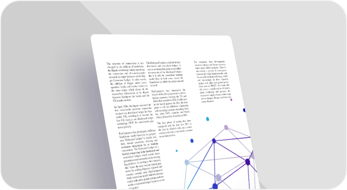 The structure of transactions is not The Federated Ledger is a hybrid of both For corporates these developments changed by the addition of blockchain, distributed and centralised ledgers. It mean ever simpler and cheaper access to the Ripple technology simply speeds up acts as an integration point across differ- faster, more visible payments. There is the transaction and all counterparties ent networks of the distributed ledgers. also clearly a process of convergence reconcile to single balances on the Rip- But it is still the consortium banking between the larger bank networks, and ple Consensus Ledger. In other words, model that, in both cases, creates the the use of blockchain technology, which the addition of Ripple unites corre- foundation on which the global network will increasingly pit these consortia spondent banks and market makers in is based. against each other and against incum- the same ledger which allows all the bents such as SWIFT. For banks this transaction information to be shared PayCommerce has announced the will create a complicated set of choices between Earthport the banks and the launch of the pilot programme to deliver about technology and partners. For FX market makers. instant payments between the US and treasurers it simply means a wider range India then extended to UK to India later of ever simpler, cheaper and faster pay- In April 2016, Earthport executed the in the fourth quarter. In 2017, the firm ments channels. first cross-border payment transaction plans to roll out additional originating received via distributed ledger for San- and receiving countries including Mex- tander UK, enabling it to become the ico, other GCC countries and South first UK bank to use distributed ledger Africa; followed by Australia in 2018. technology (DLT) for cross-border pay- ments globally. The first phase of testing has been completed and the firm sees 2017 as PayCommerce has developed a different the year in which it rolls out a multi- blockchain model based on its proprie- country real-time, cross-border, account- tary ‘Federated Ledger’ to enable real- to-account service. time, instant payments, clearing and settlement integration for its banking consortium. The Federated Ledger is a hybrid, integrating both distributed and centralised ledgers which enable faster payments across networks via its messag- ing platform. According to the company, this “takes the next step in instant pay- ments by uniting disparate regional and country systems onto PayCommerce’s bank consortium model which is interop- erable with other global systems and net- works to maintain ledger balances across all parties.” www.eurofinance.com TREASURY PERSPECTIVES 2017/2018 // 23