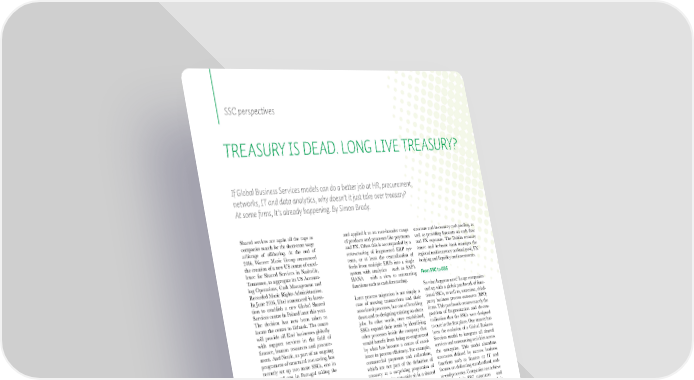 SSC perspectives TREASURY IS DEAD. LONG LIVE TREASURY? If Global Business Services models can do a better job at HR, procurement, networks, IT and data analytics, why doesn’t it just take over treasury? At some firms, it’s already happening. By Simon Brady. Shared services are again all the rage as and applied it to an ever-broader range structure and in-country cash pooling, as companies search for the short-term wage of products and processes like payments well as providing forecasts on cash flow arbitrage of offshoring. At the end of and FX. Often this is accompanied by a and FX exposure. The Dublin treasury 2016, Warner Music Group announced restructuring of fragmented ERP sys- centre and in-house bank manages the the creation of a new US centre of excel- tems, or at least the centralisation of regional multicurrency notional pool, FX lence for Shared Services in Nashville, feeds from multiple ERPs into a single hedging and liquidity and investments. Tennessee, to aggregate its US Account- system with analytics – such as SAP’s ing Operations, Cash Management and HANA – with a view to automating From SSC to GBS Recorded Music Rights Administration. functions such as cash forecasting. So what happens next? Large companies In June 2016, Eltel announced its inten- Later process migration is not simply a end up with a global patchwork of func- tion to establish a new Global Shared case of moving transactions and their tional SSCs, as well as, sometime, third- Services centre in Poland later this year. associated processes, but one of breaking party business process outsource (BPO) The decision has now been taken to down and re-designing existing on-shore firms. This patchwork creates exactly the locate the centre to Gdansk. The centre jobs. In other words, once established, problem of fragmentation and de-cen- will provide all Eltel businesses globally SSCs expand their remit by identifying tralisation that the SSCs were designed with support services in the field of other processes inside the company that to cure in the first place. One answer has finance, human resources and procure- would benefit from being re-engineered been the evolution of a Global Business ment. And Nestlé, as part of an ongoing by what has become a centre of excel- Services model to integrate all shared programme of structural cost saving, has lence in process efficiency. For example, services and outsourcing activities across recently set up two more SSCs, one in commercial payments and collections, the enterprise. This model abandons China and one in Portugal taking the which are not part of the definition of structures defined by narrow business total to nine. treasury at a surprising proportion of functions such as finance or IT and Initially, treasury is in control of the out- companies, also naturally sit in a shared focuses on delivering standardised, end- sourcing of its functions. The creation of service centre. to-end processes. Companies can achieve one or more shared service centres is this with their SSC structures – and driven by a corporate desire for lower- So, over time, companies end up with Shell, AstraZeneca and others have their cost, higher efficiency processes. Treas- structures like Pfizer. It has in-country own models for achieving standardisa- urers’ solution has been to centralise SSCs where necessary – its SSC in China tion – but others believe the multifunc- treasury operations and to outsource manages its in-country bank account tional GBS model is best. non-strategic treasury processes. Typically, this process starts with stream- lining bank account structures, bank account management and pooling mech- anisms, often by moving to a single bank- ing partner. This eliminates manual processes, creates greater cash visibility and gives treasury access to real-time information, allowing it to develop better cash forecasting and insights into the underlying businesses. Standardisation is achieved through the adoption of ISO standards or the creation of company- wide process templates. Shell for example, as part of the compa- ny’s long-running treasury centralisa- tion, started by templating the bank reconciliations process and then rolling that into the SSC. It then developed this idea of a single company-wide process 36 // TREASURY PERSPECTIVES 2017/2018 www.eurofinance.com